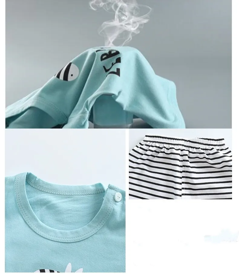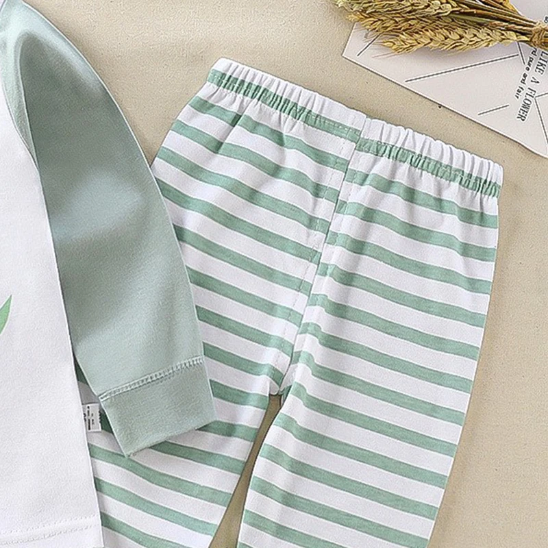 Cartoon Print Pajama Suit Tops+Pants 2-piece Set Underwear Kids Boys Girls Baby Cotton Sleepwear Spring Autumn Clothes 1-6 Year